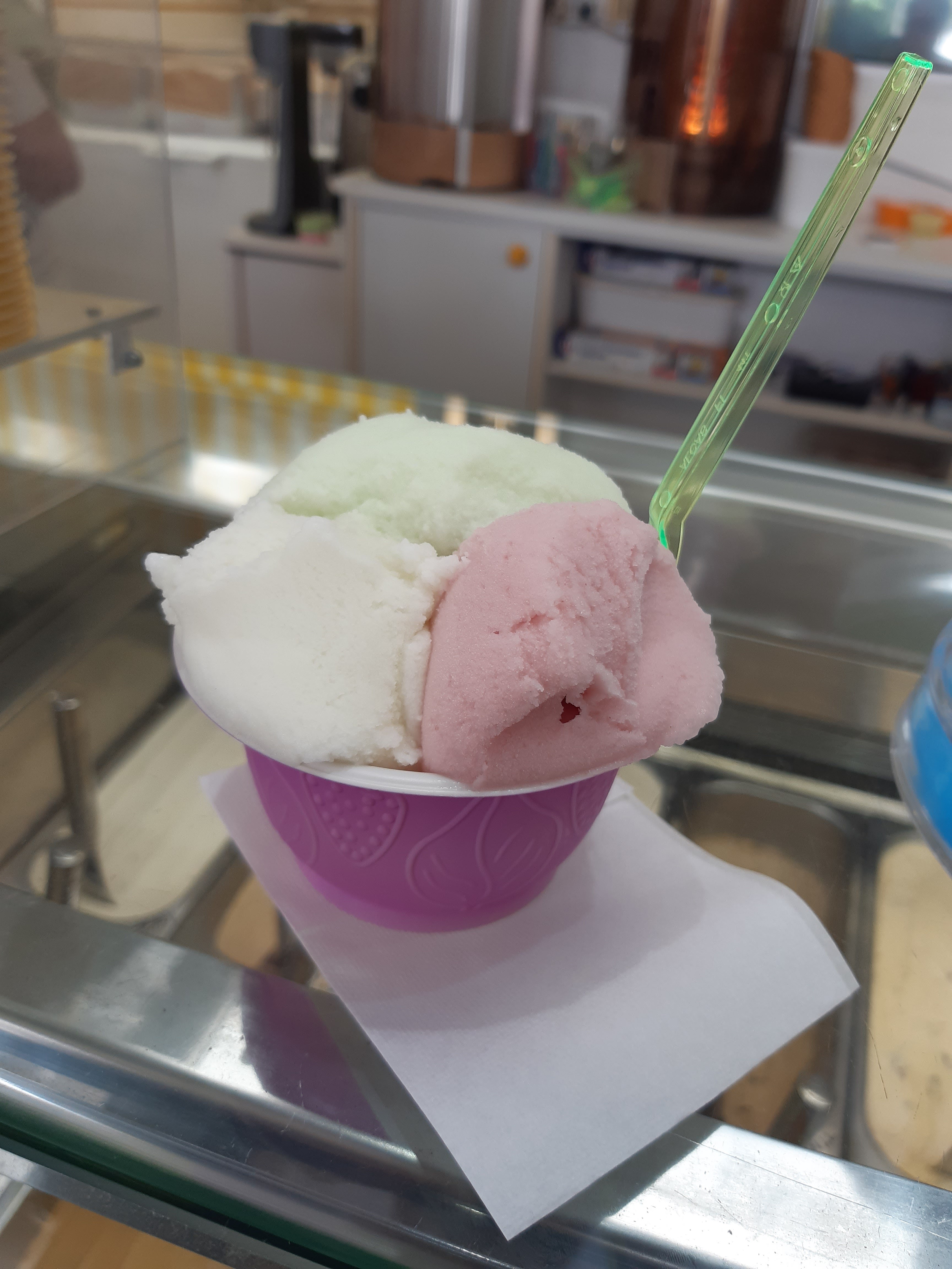 Un DÉLICE les glaces de ce fabricant j’ai toujours pris mes glaces au litre ici et pour une fois que je me déplace personnellement j’adore les glaces à l’italienne qu’ils ne faisaient pas avant....j’ai pris une vanille fraise À TOMBER merci pour ce bon moment et maintenant je me chargerai des courses.....