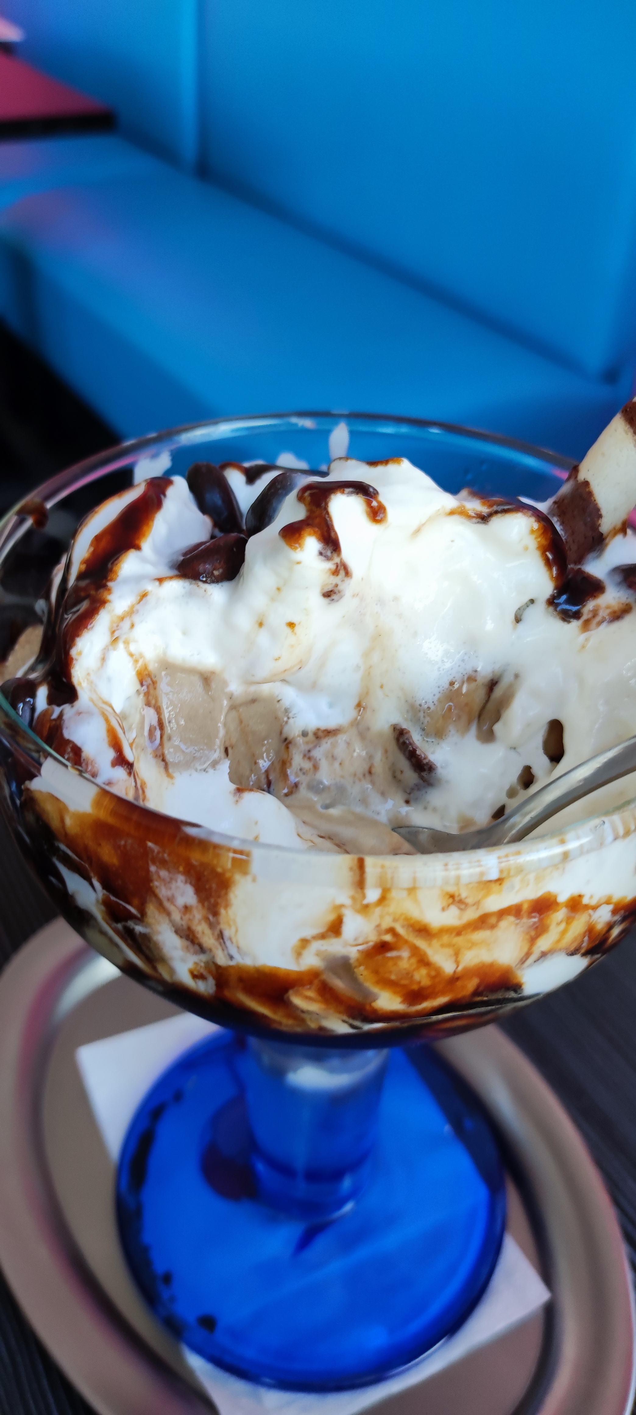 Énorme choix de glaces ***impressionnant *** Plus de 40 parfums différents bounty oreo kinder barbe a papa snickers Nutella raffaello kinder Bueno,de la glace ***coca cola ***et plein d'autres... Équipes souriante et accueil parfait 👌 Je valide
