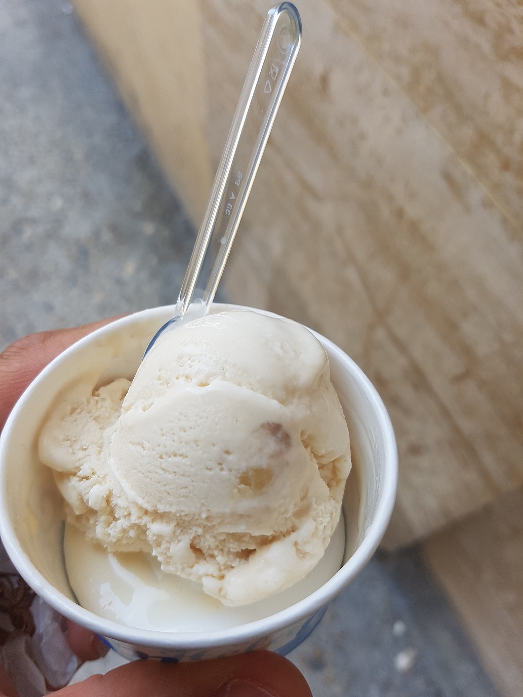 Attrape touristes, les glaces ne sont pas fameuses du tout. La pistache a un goût d’amande amère, le nougat et la profiterole insipides, le chocolat avec des cristaux de glace à l’intérieur