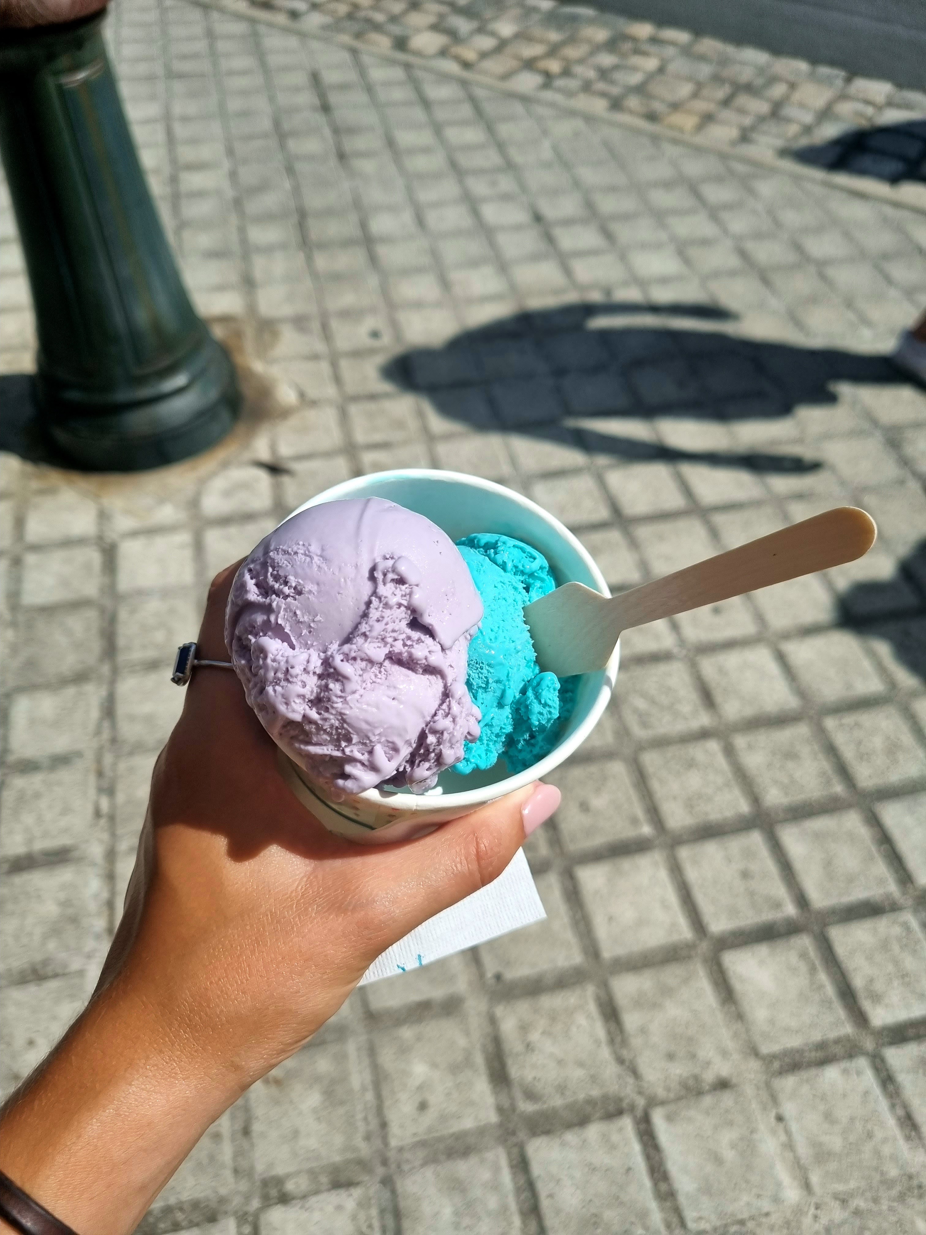 Très bonnes glaces. Très bel emplacement. 2 glaces italiennes (pistache-vanille et pâte à tartiner-vanille) parfaites. Testez par vous-même !