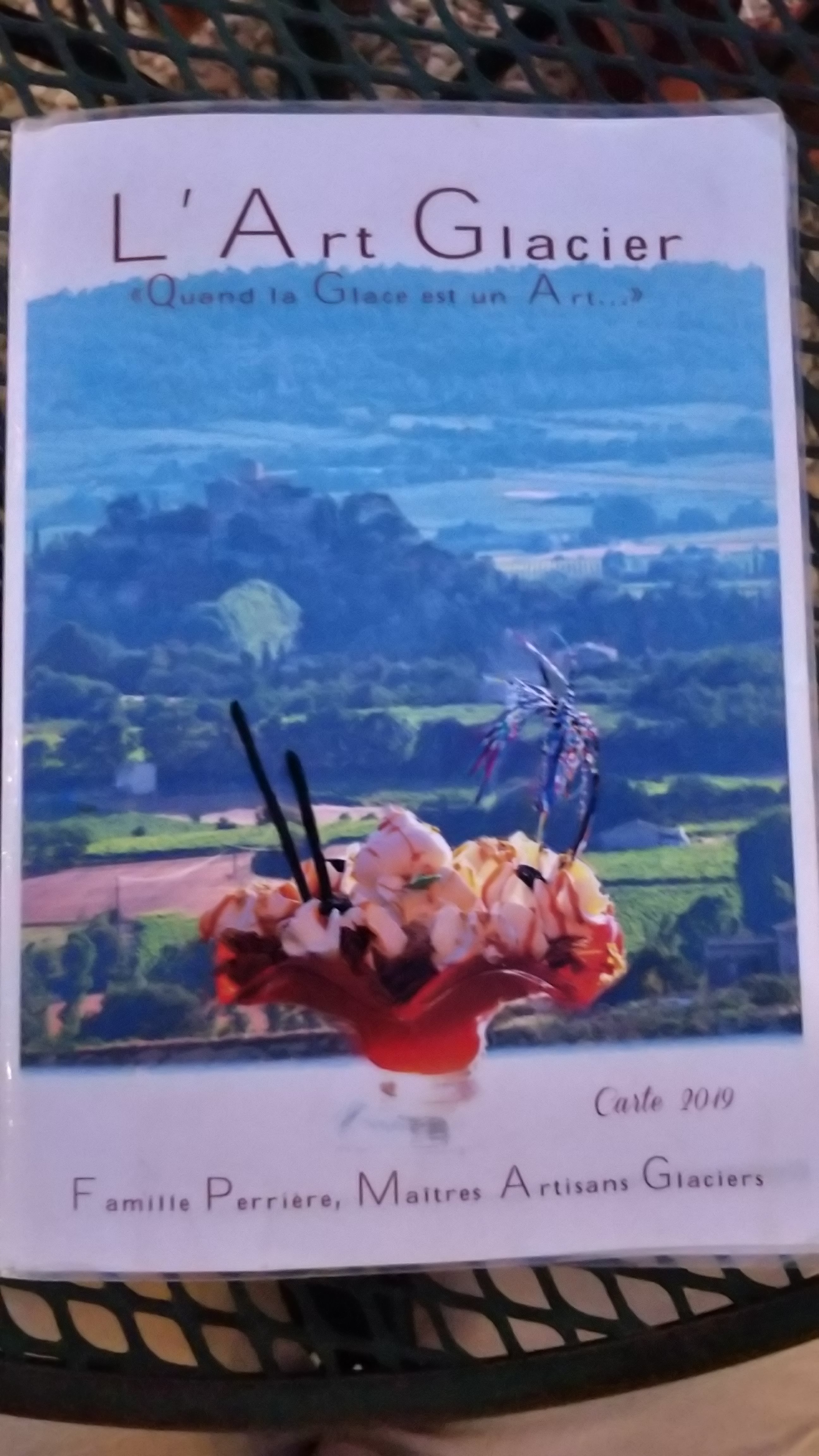 Après avoir suivi une petite route, on arrive sur un grand parking ombragé, delà à pied on débouche sur une terrasse avec une vue magnifique sur le Luberon. On y est Bienvenue chez l'Art Glacier. Des glaces et des sorbets à vous couper le souffle ! Des parfums comme on en voit jamais ! Une présentation des coupes de glace très raffinée et imaginative, bref un conseil si vous passez dans le Lubéron n'hésitez pas une seconde allez vous régaler à l'Art Glacier. J'y reviendrai c'est sûr !