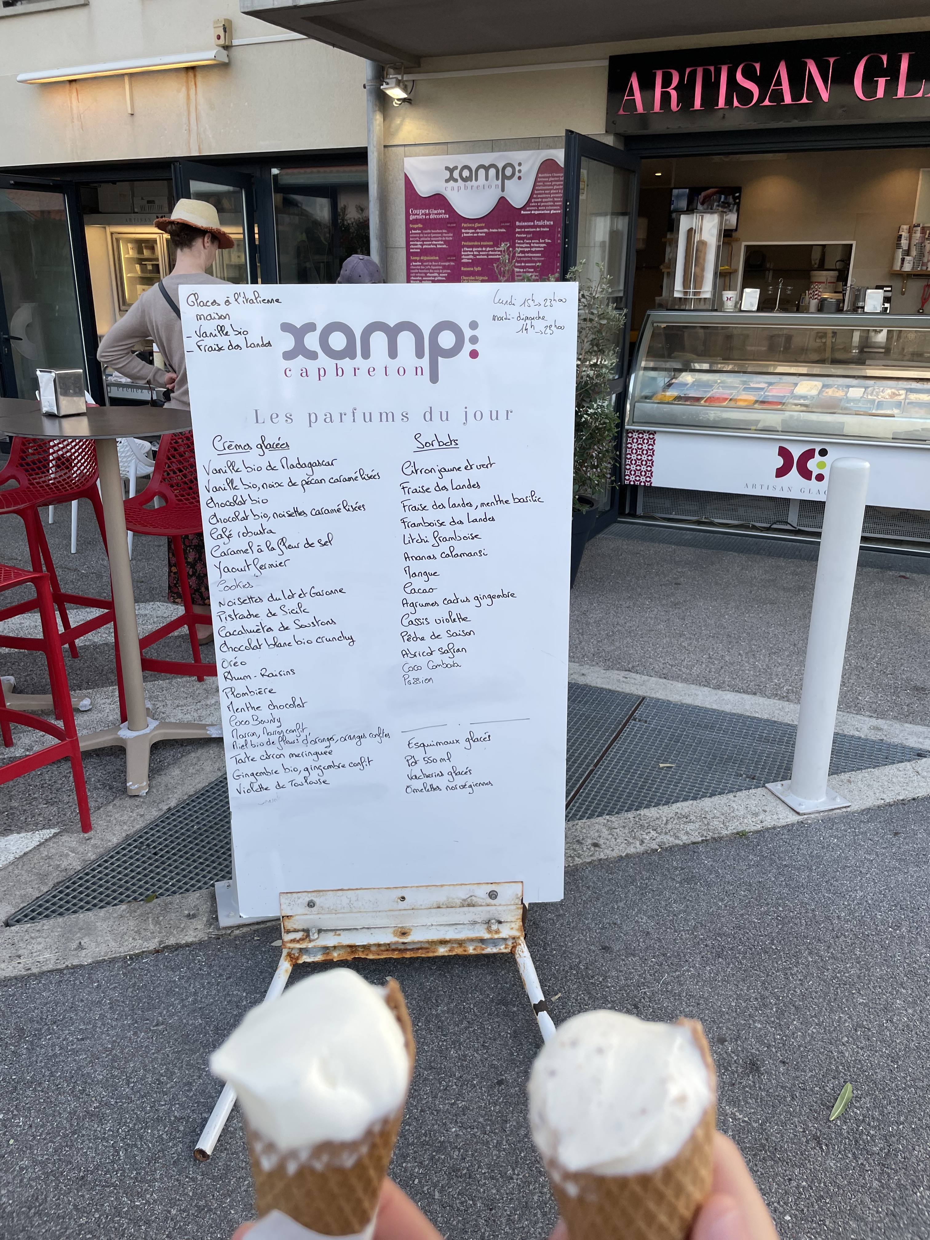 Bien triste de quitter la région Landaise et surtout ces délicieuses glaces, onctueuses, originales. A tous les amoureux de bons produits, passez goûter les glaces Xamp, à Capbreton, réalisées avec amour et une recherche qualitative dans les matières premières