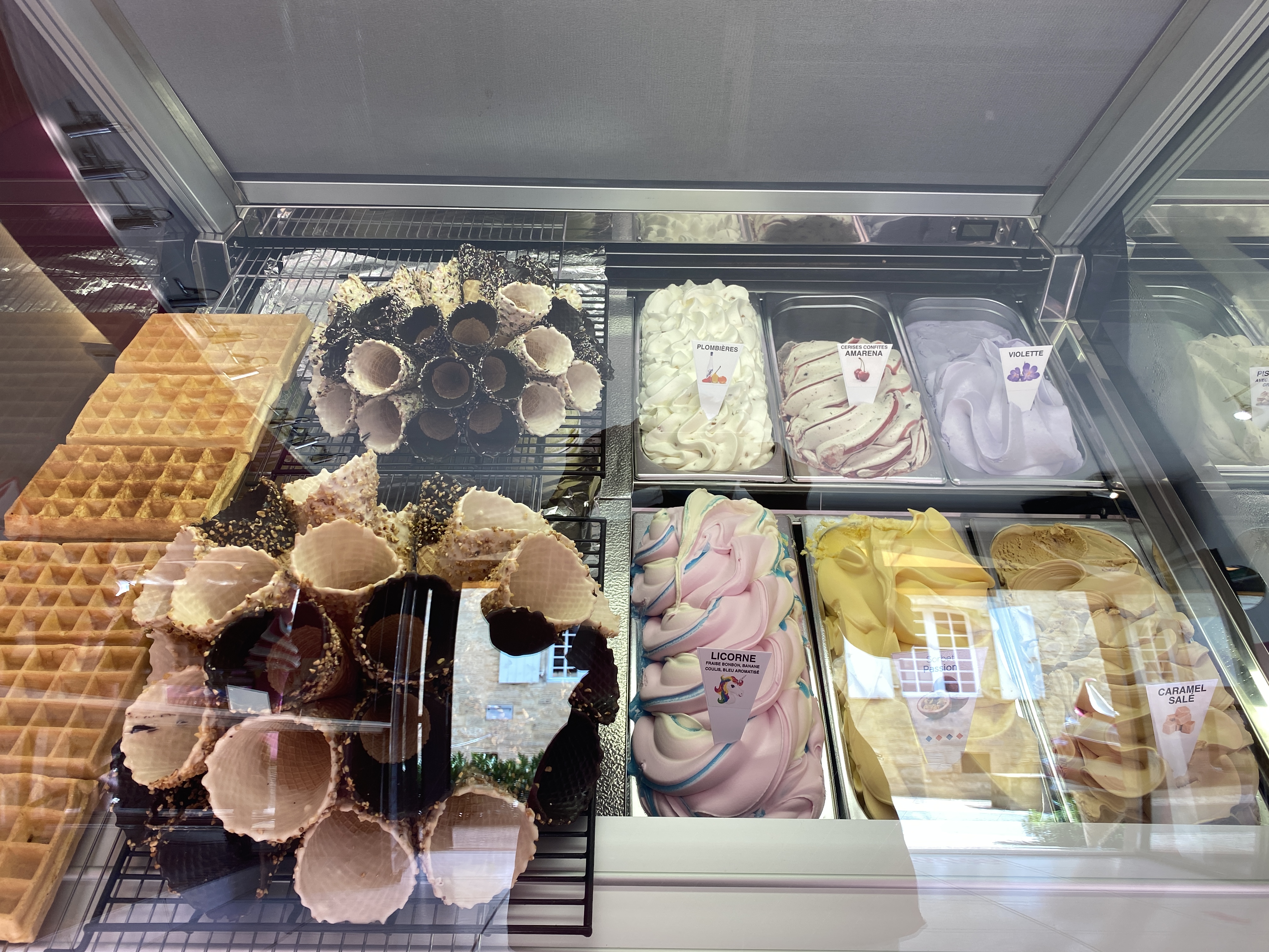 Le petit glacier pour les grands gourmands! Quand on voit l’onctuosité des glaces et les parfums proposés on a beaucoup de mal à faire un choix tellement on a envie de tous les goûter. Nos choix on été sur noix de Coco, melon, noix, tiramisu, framboise,myrtille bulgare et pêche de vigne. Un régal, à chaque cuillère on sent le parfum se diffuser et assouvir notre gourmandise. À faire après la remontée de la grotte pour un rafraîchissement gourmand