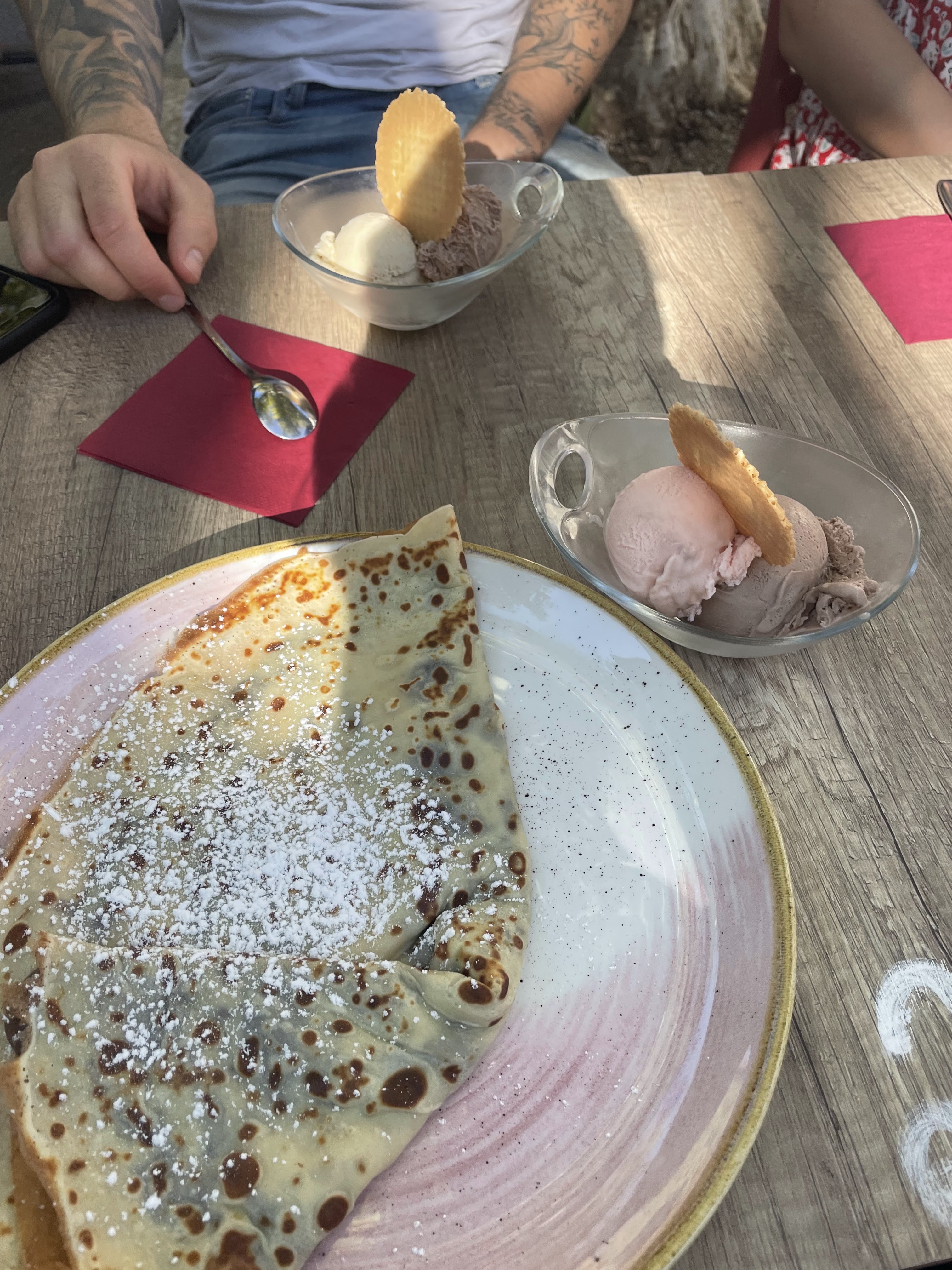 Super service au côté de la jeune Améni qui nous a reçu avec amabilité aujourd’hui crêpes super bonnes et glaces excellentes ! on reviendra