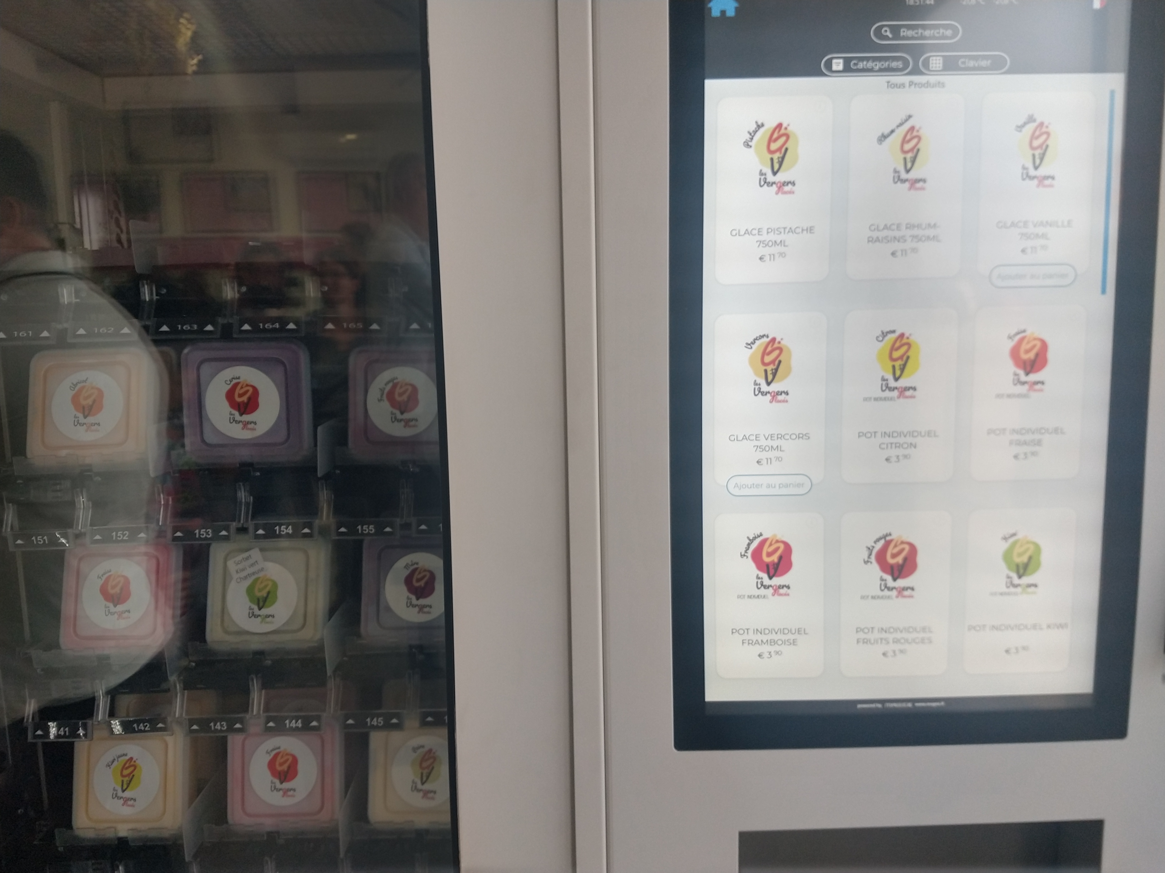 Nous avons acheté des sorbets au distributeur, nous nous sommes régalés !!! On retrouve enfin le vrai goût du fruit! Merci pour cette expérience gustative exceptionnelle !