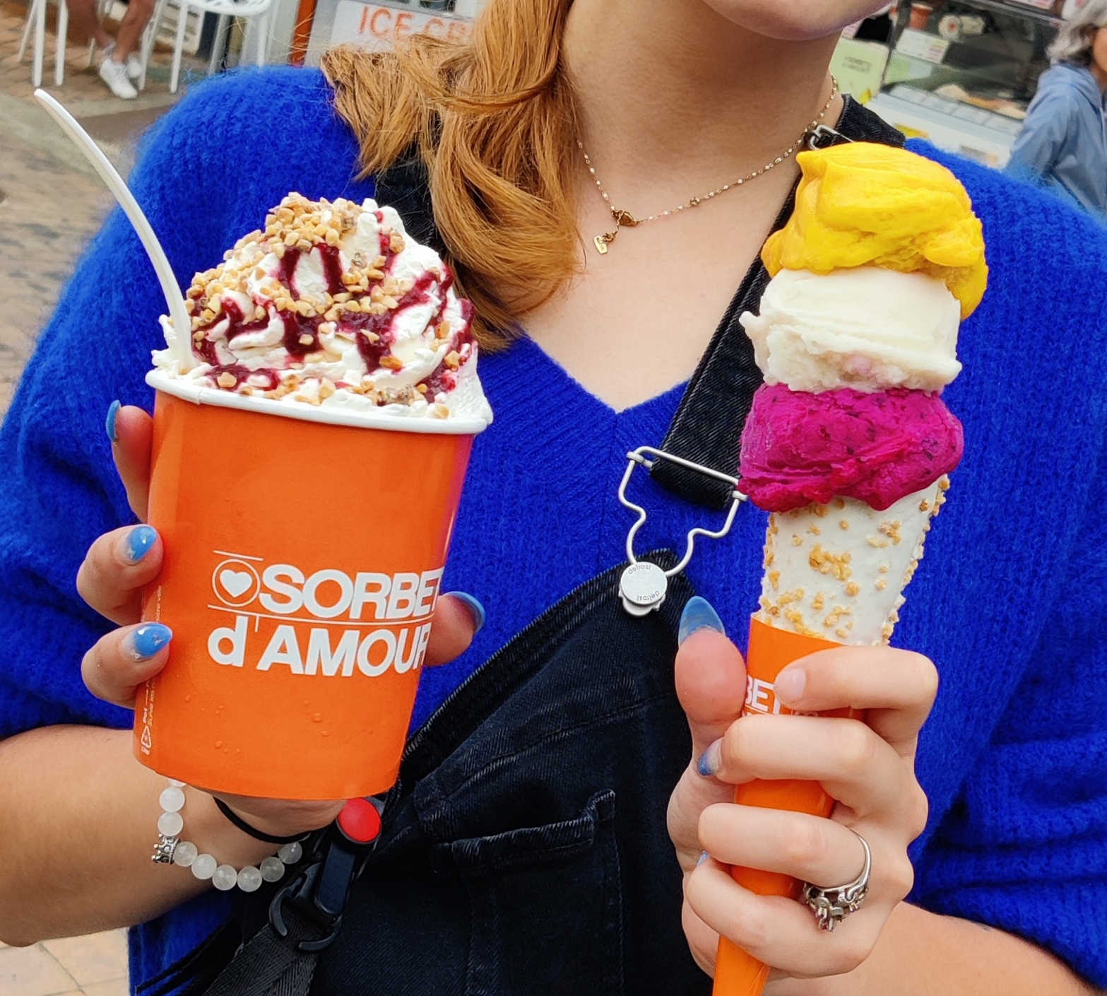 Nous avons adoré surtout pour les parfums originaux qui mélangent différentes saveurs. Nous venons de Cannes où ça n’existe pas malgré la multitude de glacier.