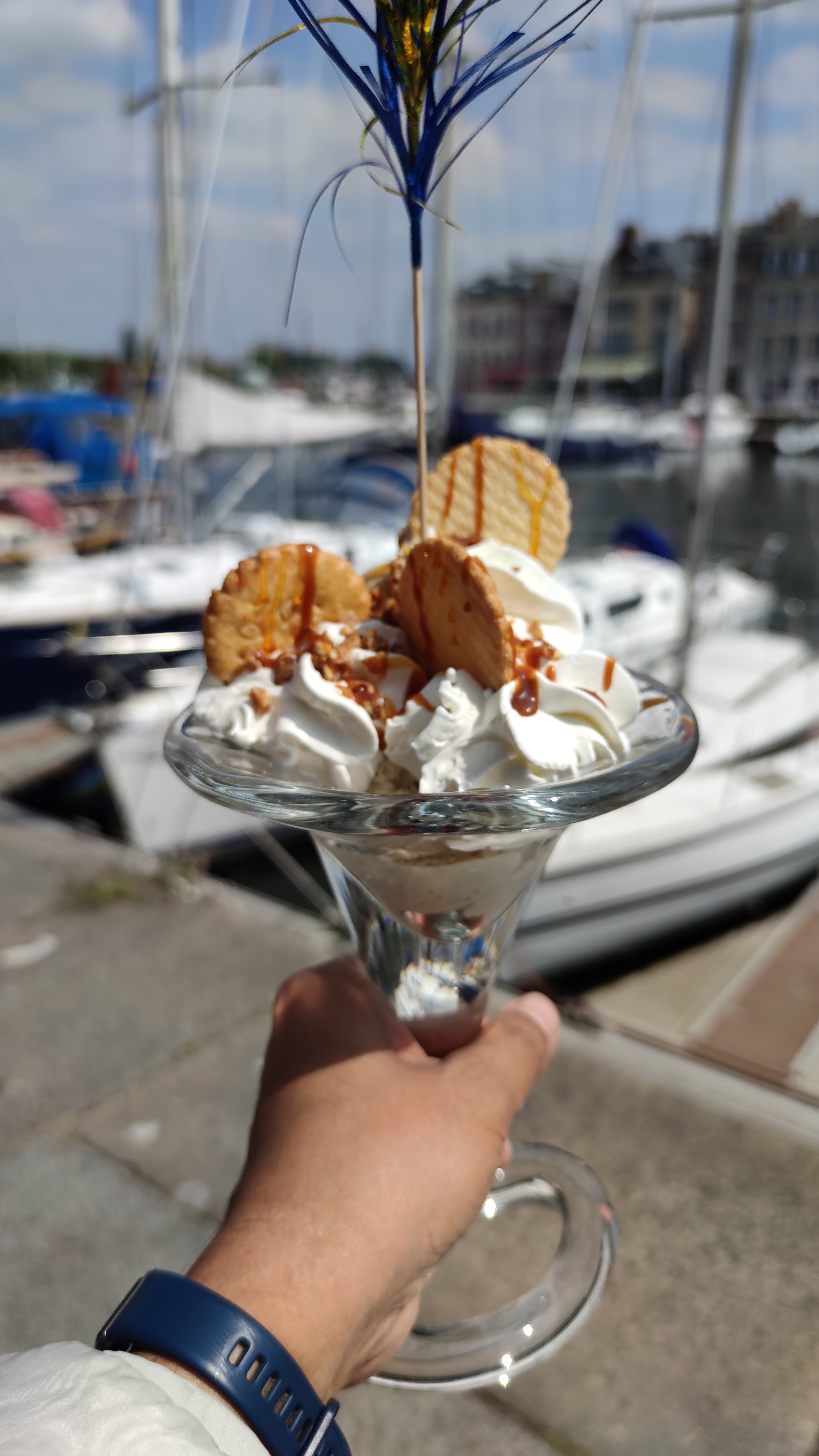 Excellent ! Nous allions faire l'erreur de nous arrêter au premier glacier du port jusqu'à ce que l'on consulte les avis pas très encourageants et avons donc avancé jusqu'à Parfaim de vanille. Une délicieuse fraise melba bien garnie, des gaufres croustillantes et moelleuses à souhait 😍 c'est généreux et très très bon. Merci pour ce goûter en famille qui a bien clôturé notre journée à Honfleur!