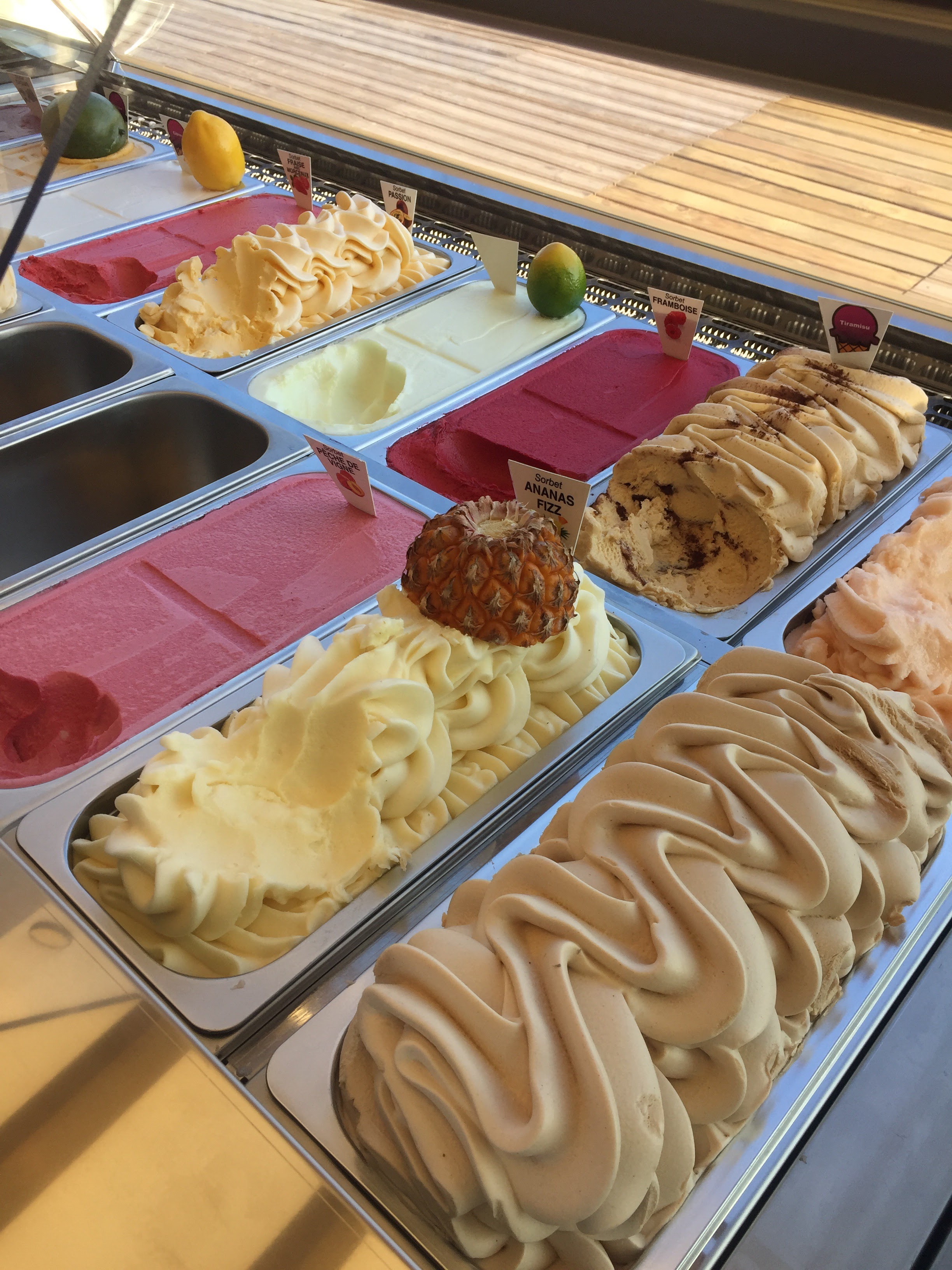 De nombreux bons parfums de glace, nous avons pris un peu de tout: noisette, stracciatella, snickers, schtroumph, barbe à papa, cassis… et même une gaufre. Qui elle aussi a été englouti :)