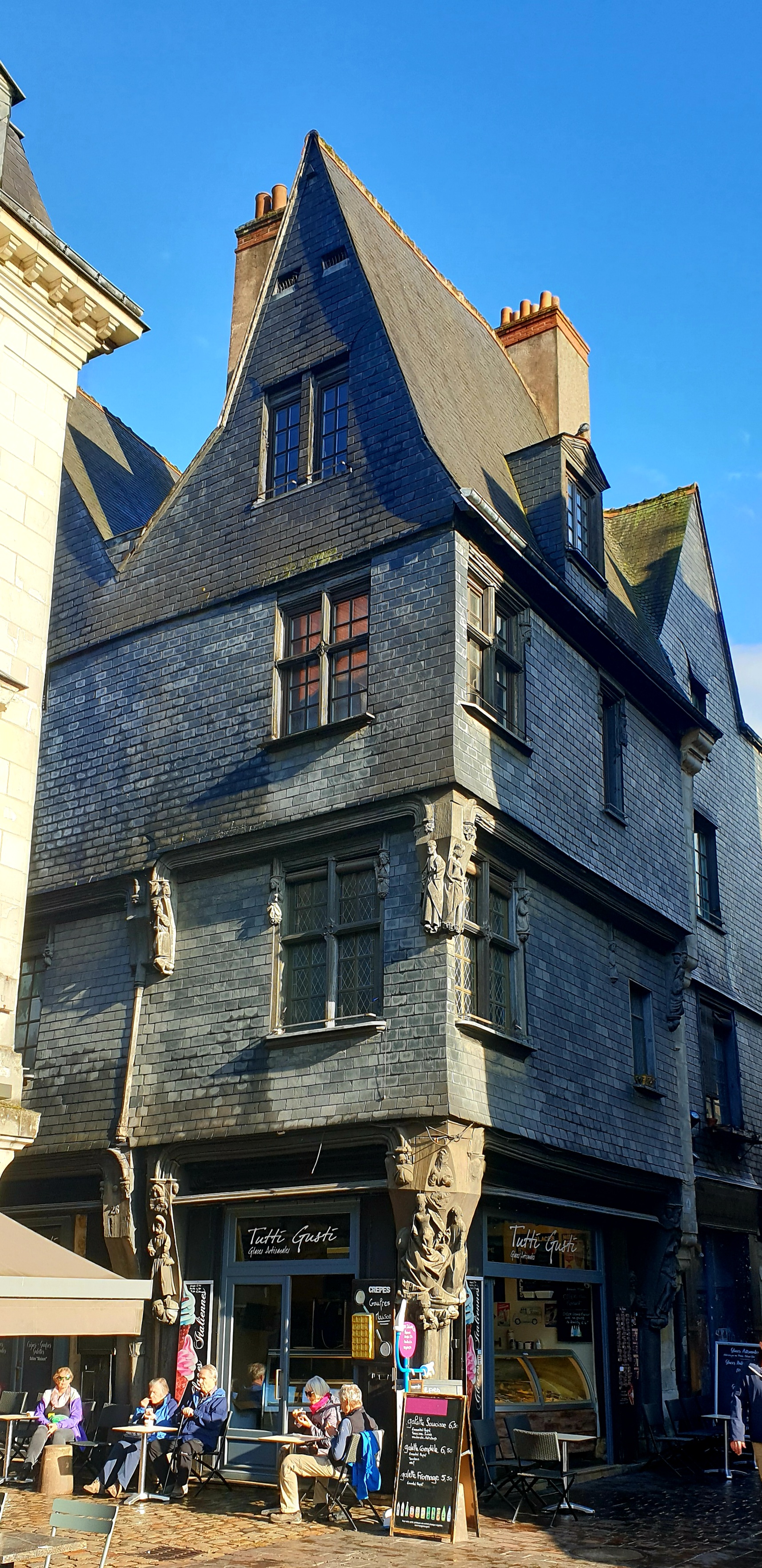 Très jolie boutique dans une des rues pittoresques de Tours. Les glaces sont excellentes, l'accueil chaleureux, et les tables offrent un agréable point de vue sur la rue piétonne....et sur les sculptures en bois de la façade (ainsi que leur histoire: mais pour ça il faut demander plus de renseignements aux serveurs)